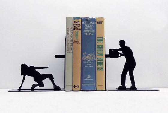 This creative handmade bookends designed by Knob Creek Metal Arts, each set contains metal two pieces, they are heavy to hold your reading collections.